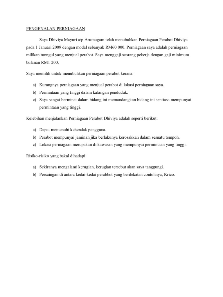 Contoh Pengenalan Perniagaan Pdf